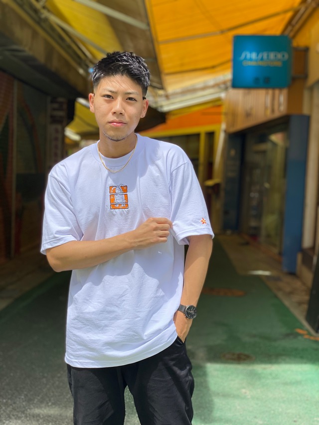 size:S/M/L/XL color:White/Black 胸のフロントロゴ・袖のワンポイント全て刺繍の作品となっております。 ※モデル170cm L size着用