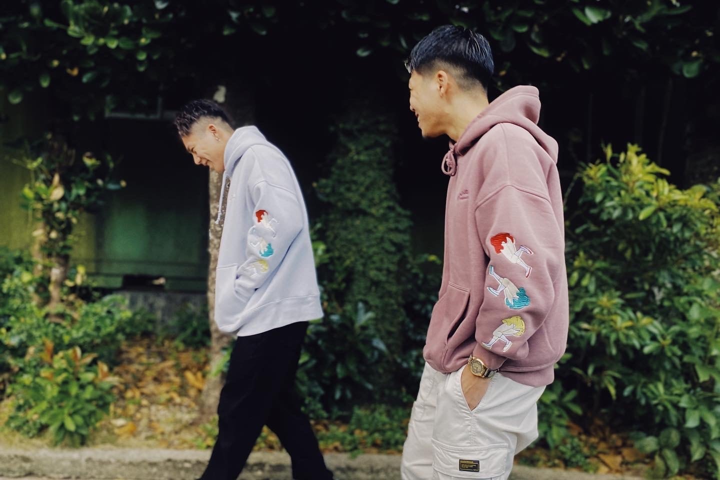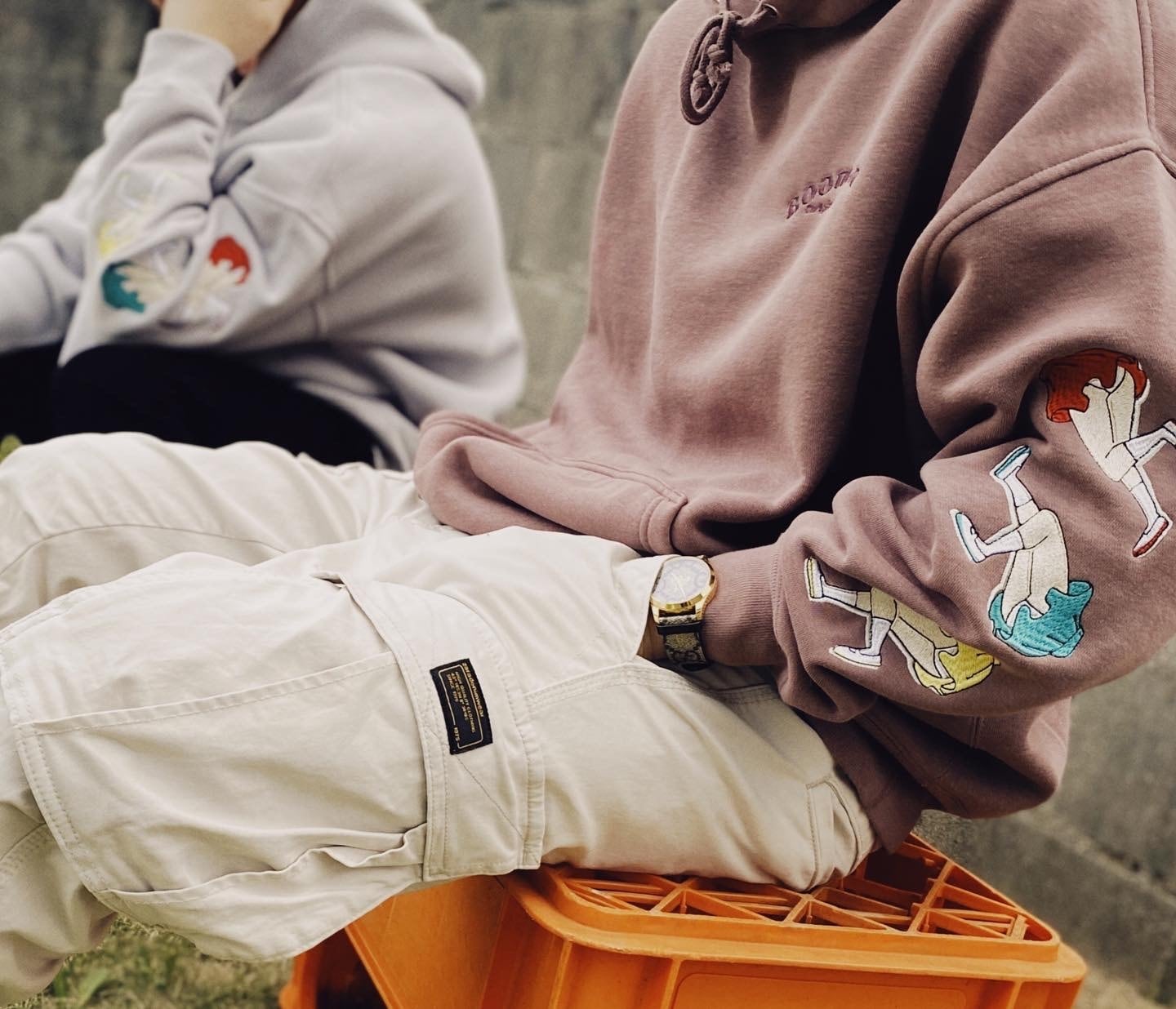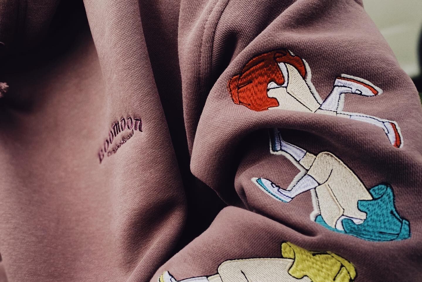 秋・冬・春ほぼ全てのシーズンで着れる、厚手のビックシルエットプルオーバーパーカー(裏起毛)となっています。左胸と左袖のデザインも全て刺繍です。